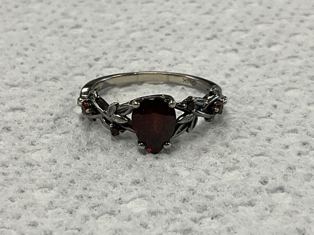 10K White Gold Red Stone Red Stone Ring 2.7gr Size 7