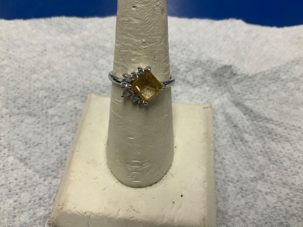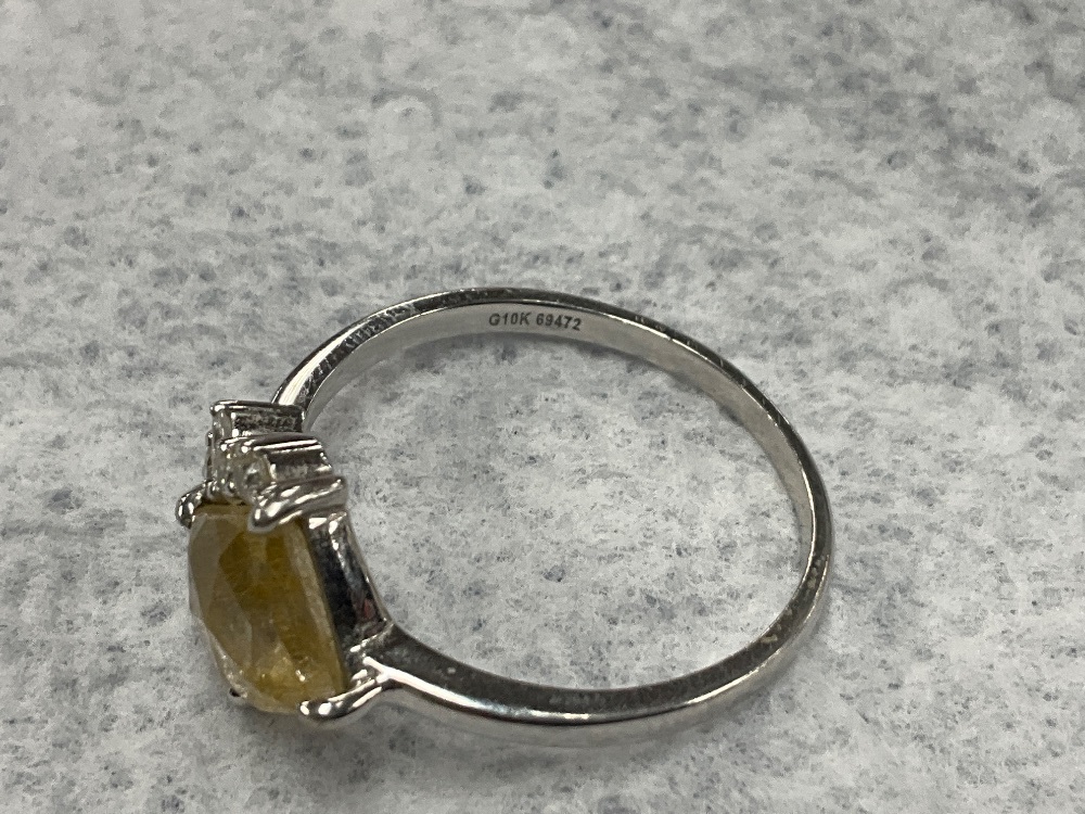 10K White Gold Yellow Stone & diamond Ring 3.0 Gr Size 9