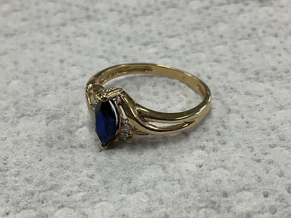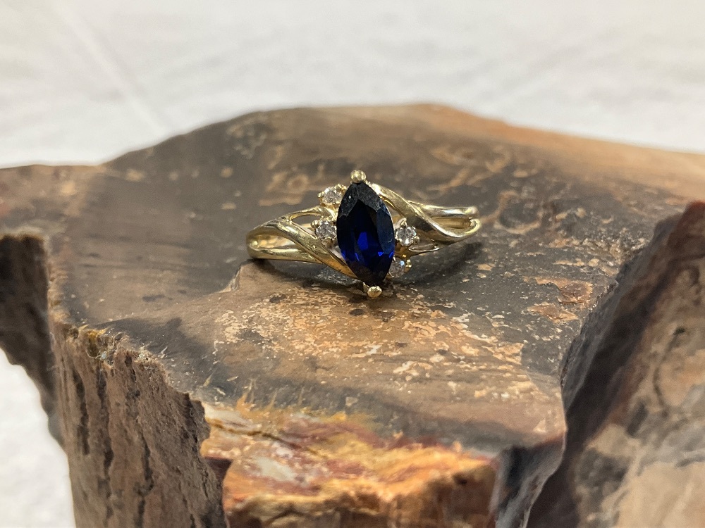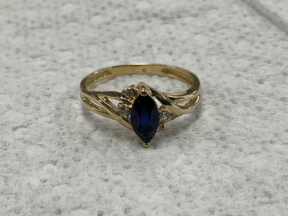 10K Yellow Gold Blue & White Stone Ring 2.0gr Size 6.75