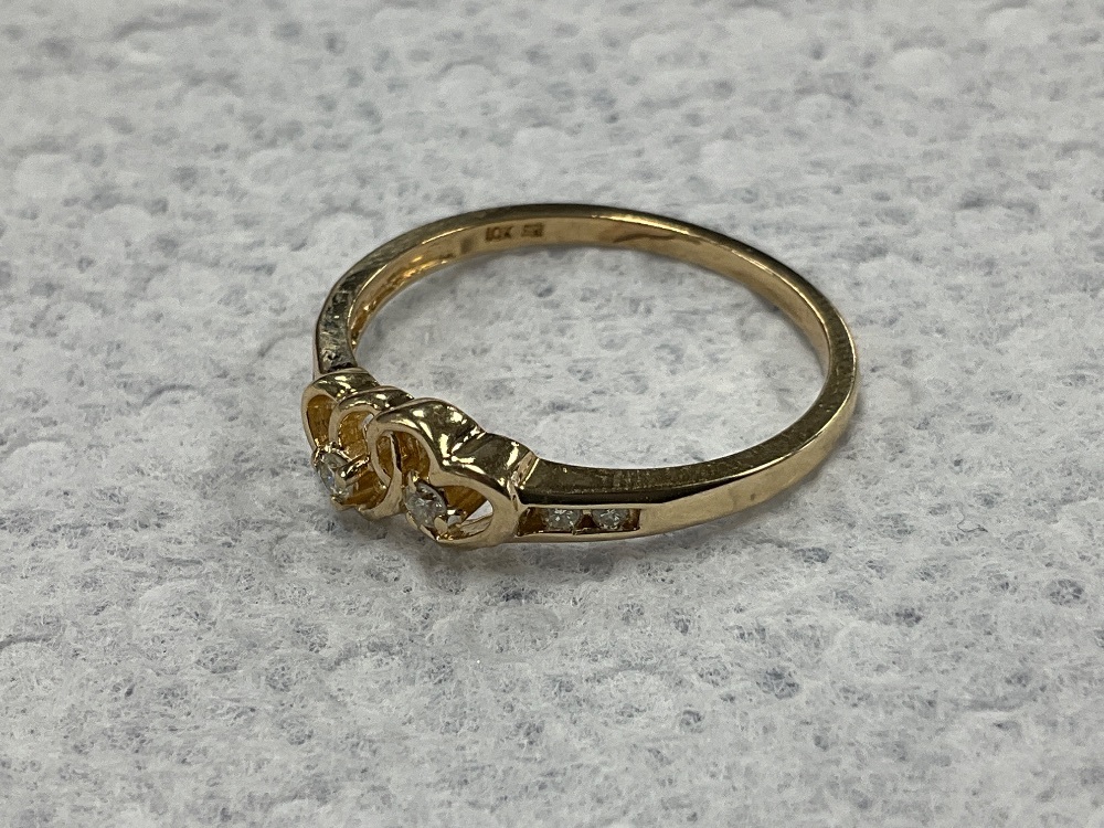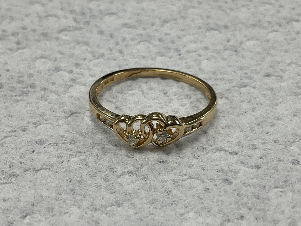 10K Yellow Gold double Heart Diamond Ring 1.5gr Size 7