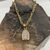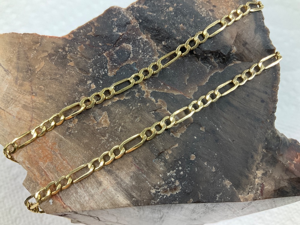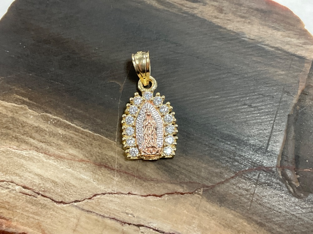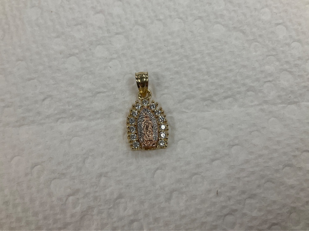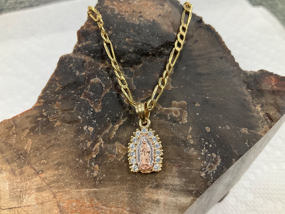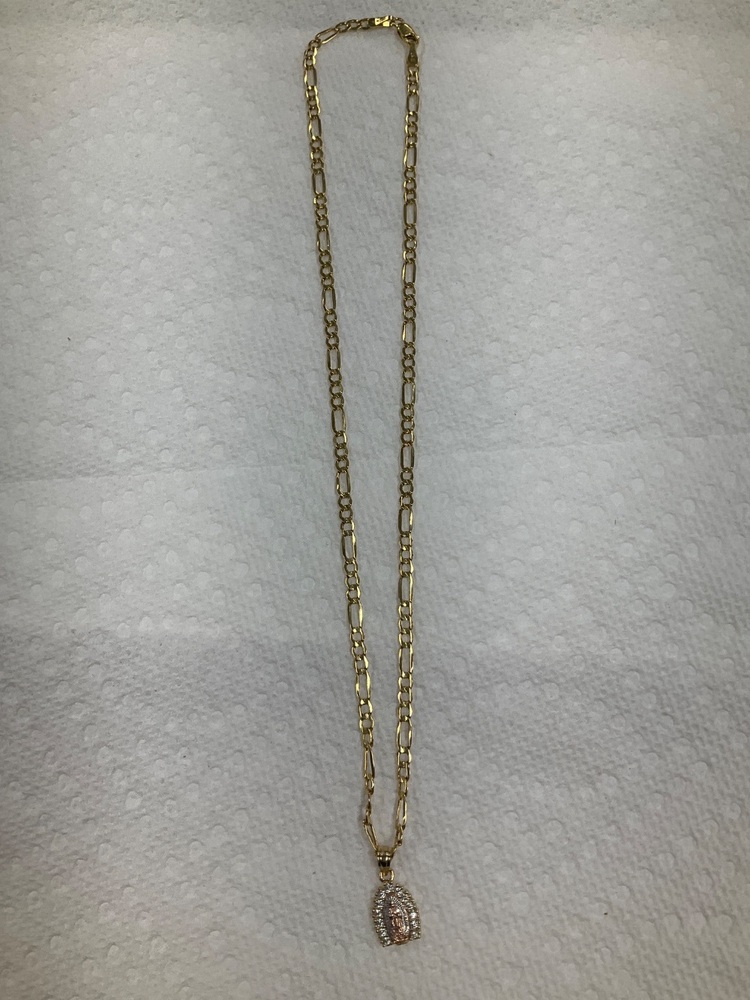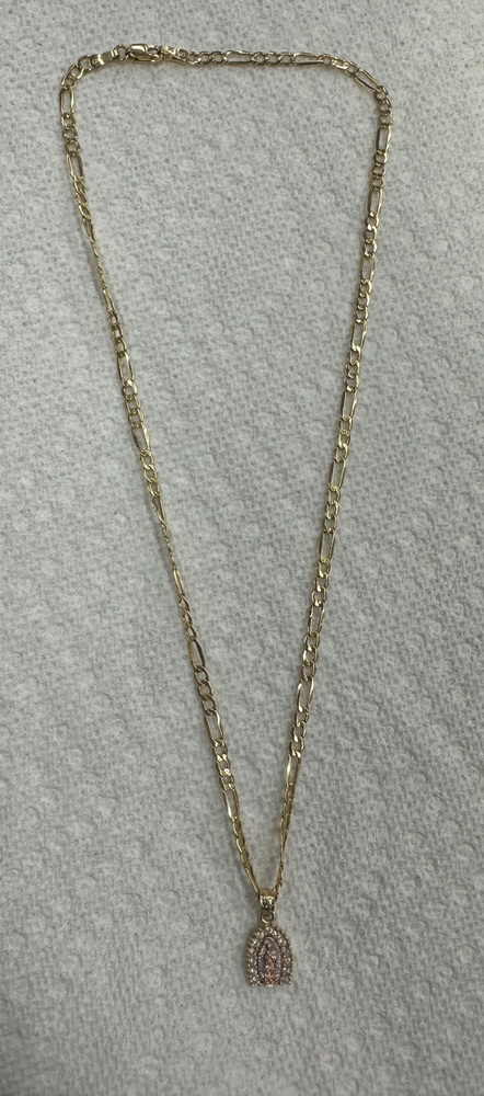 10K Yellow Gold Figaro Chain 16" w/ White Stone Mary Pendant 3.2Gr