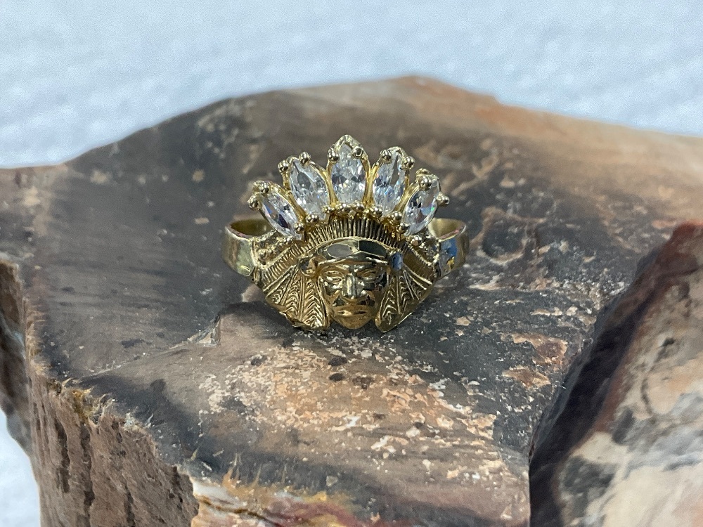 10K Yellow Gold Marquise CZ Native American Pendant 2.0gr Size 10.75