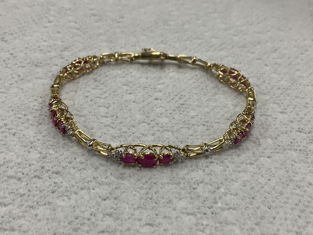 Yellow Gold Bracelet Bracelet 7.1g/10kt - 5 Diamond Red/Pink Oval Unknowns 1.500ct/0.30g, 10 Diamond