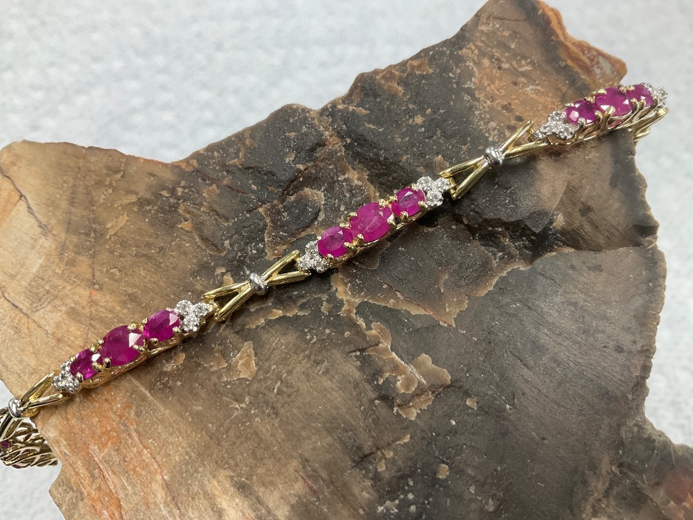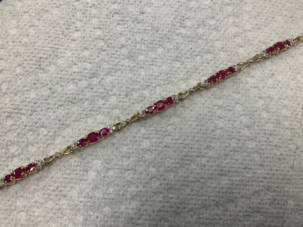 10K Yellow Gold Ruby & Diamond 7" Bracelet 7.1gr