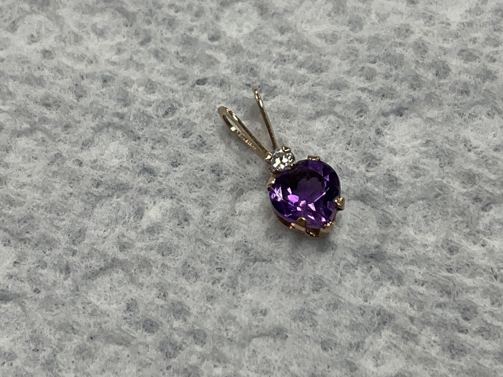 10kt YG Heart Purple Stone Pendant 0.3Gr