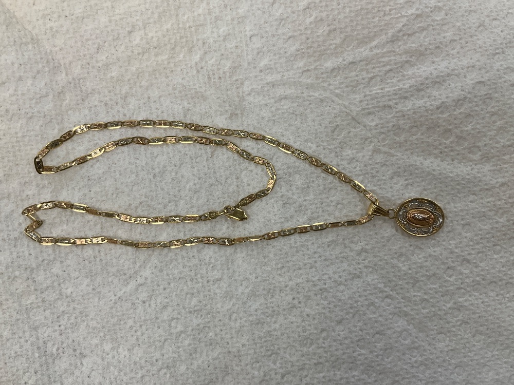 14K Three Tone Gold 16" Valentino Chain W/ Mary Pendant 5.5Gr