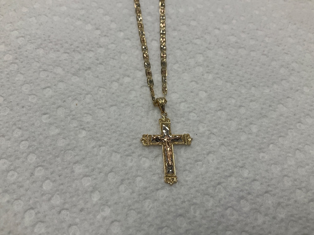 14K Three Tone Valentino 24" Chain W/ Cross Pendant 6.5Gr