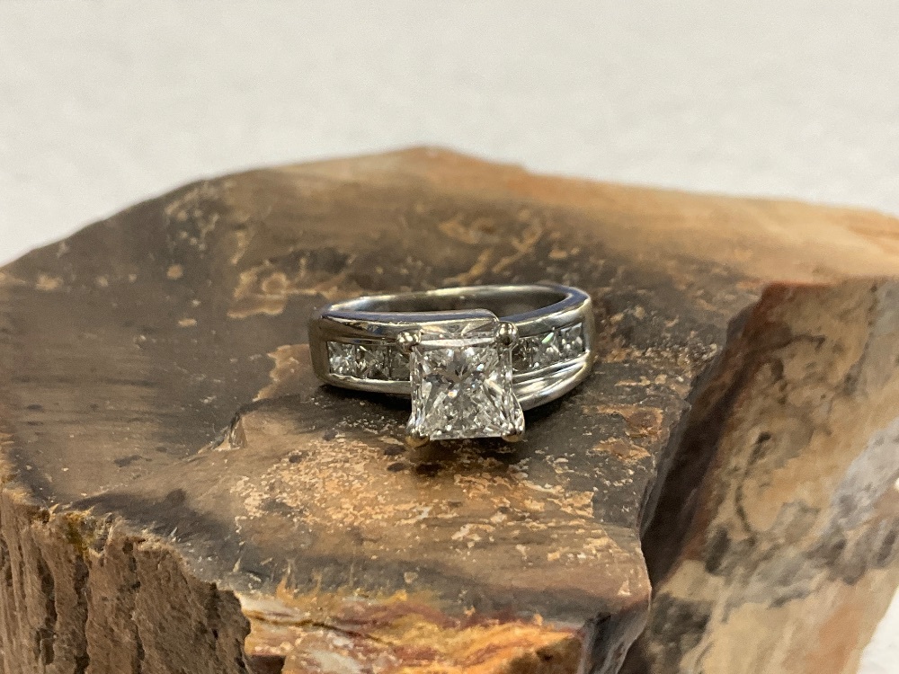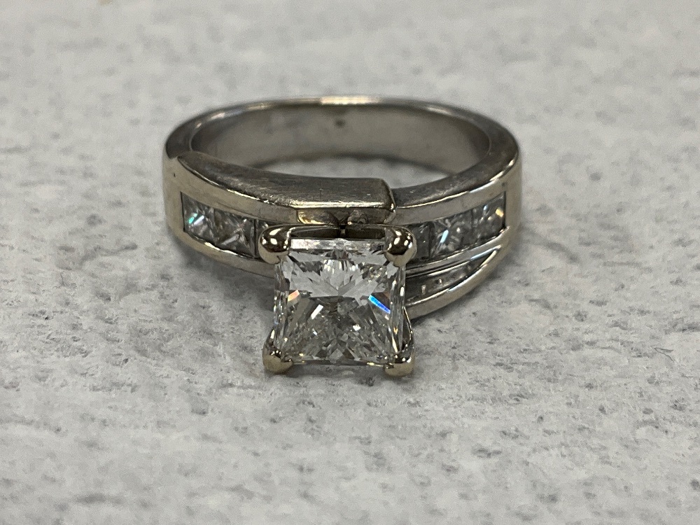 14K White Gold 1.51ct Princess Diamond Ring Size 5.75 with Diamond Certificate