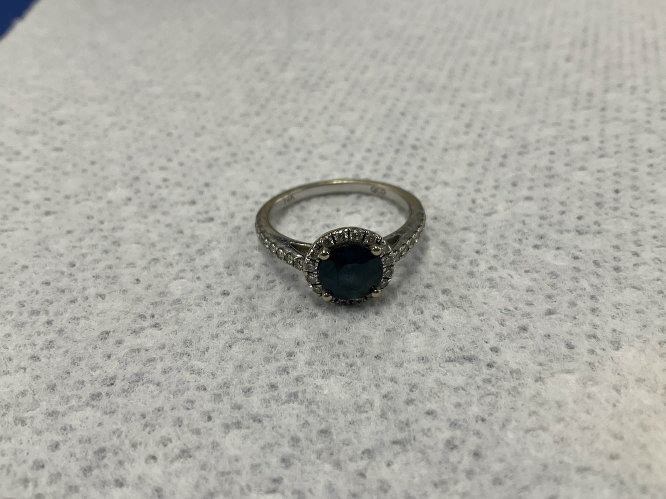 14K White Gold Blue Stone Diamond Halo Ring 3.00gr Size 7
