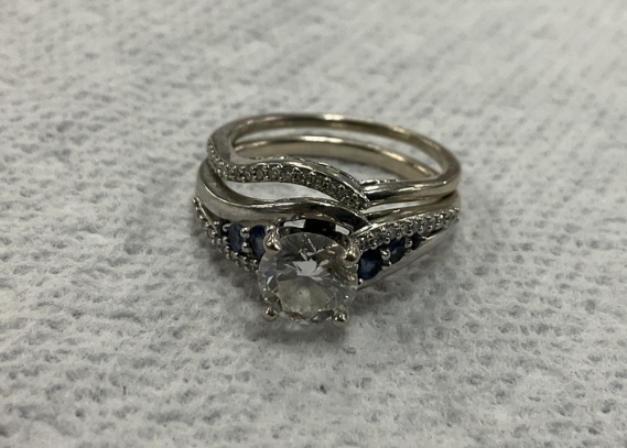 14K White Gold Diamond & Blue Stone Ring Set 6.5Gr Size 8