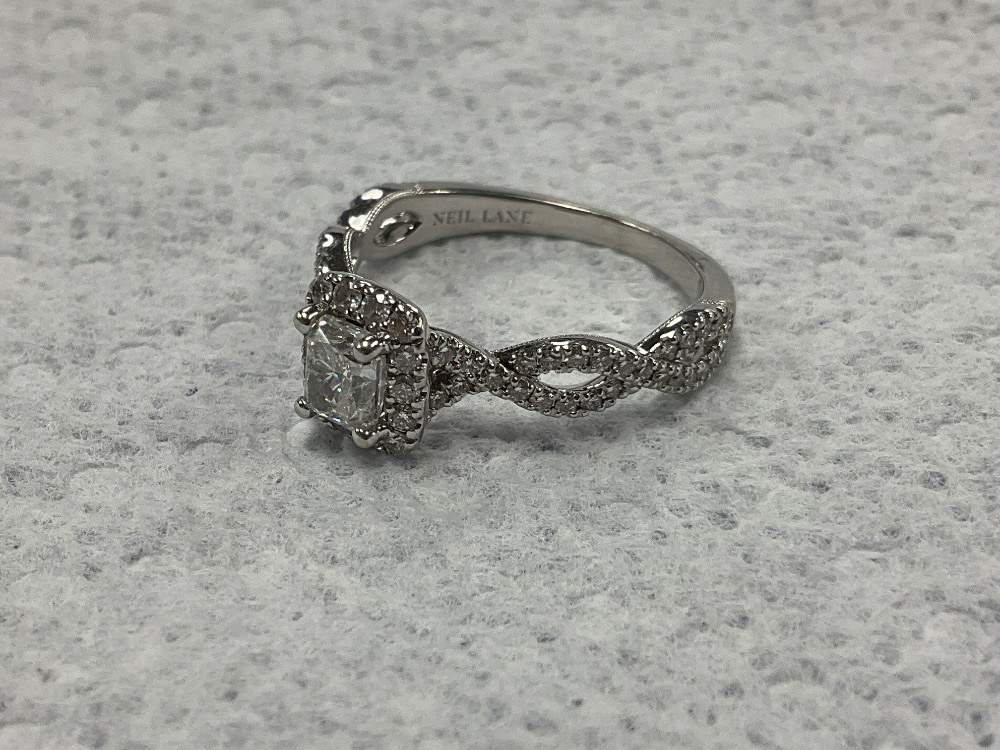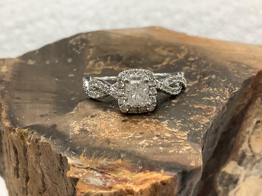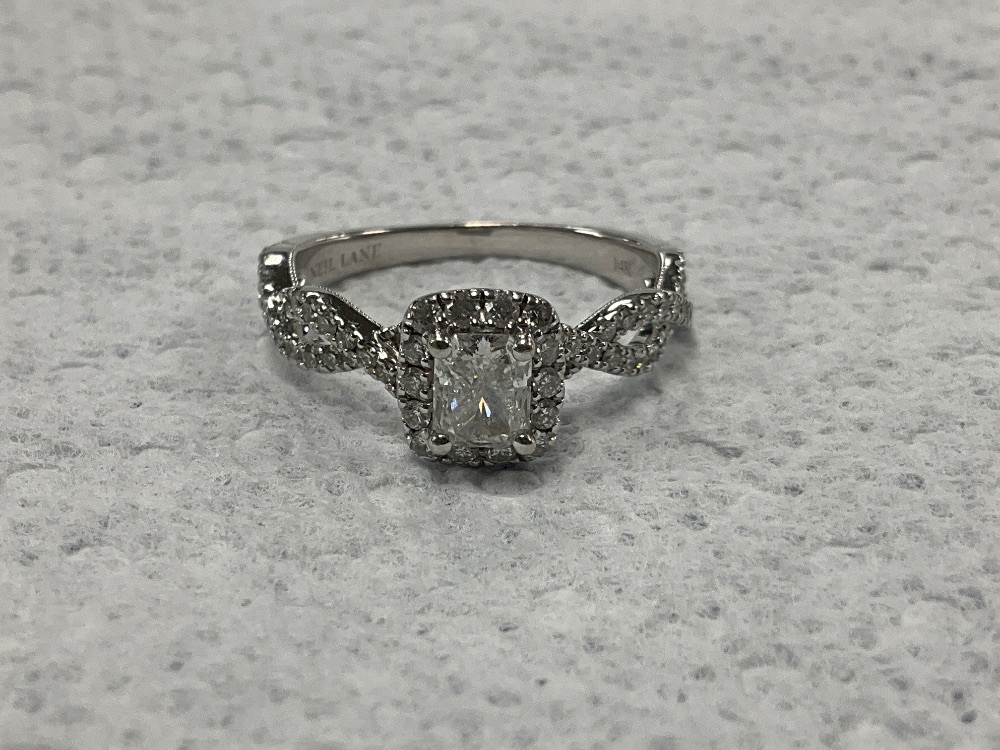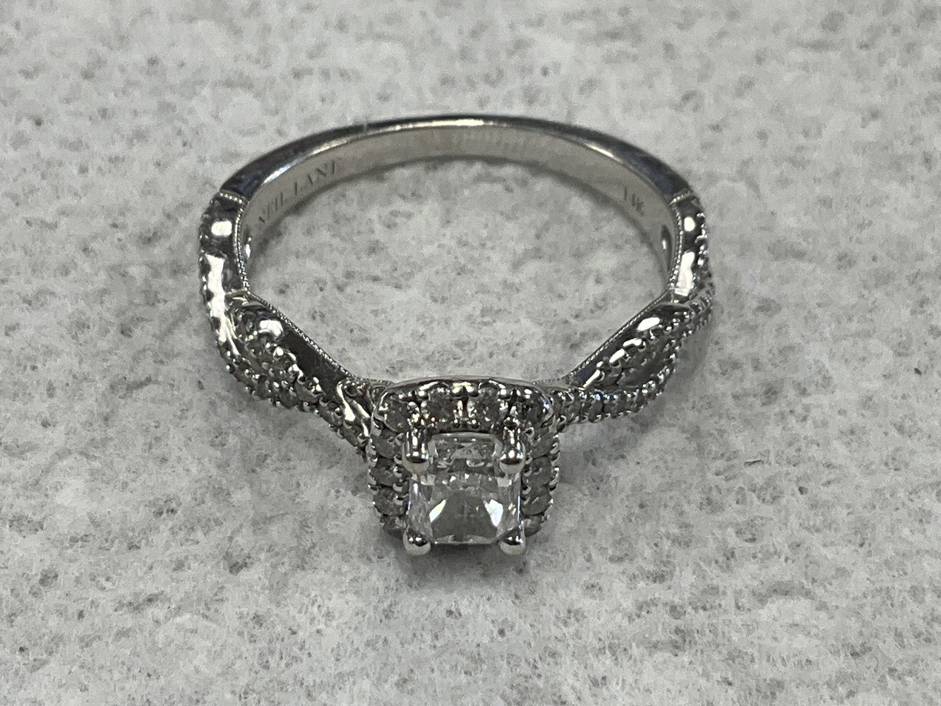 14K White Gold Emerald Diamond Halo Ring 3.8gr Size 8