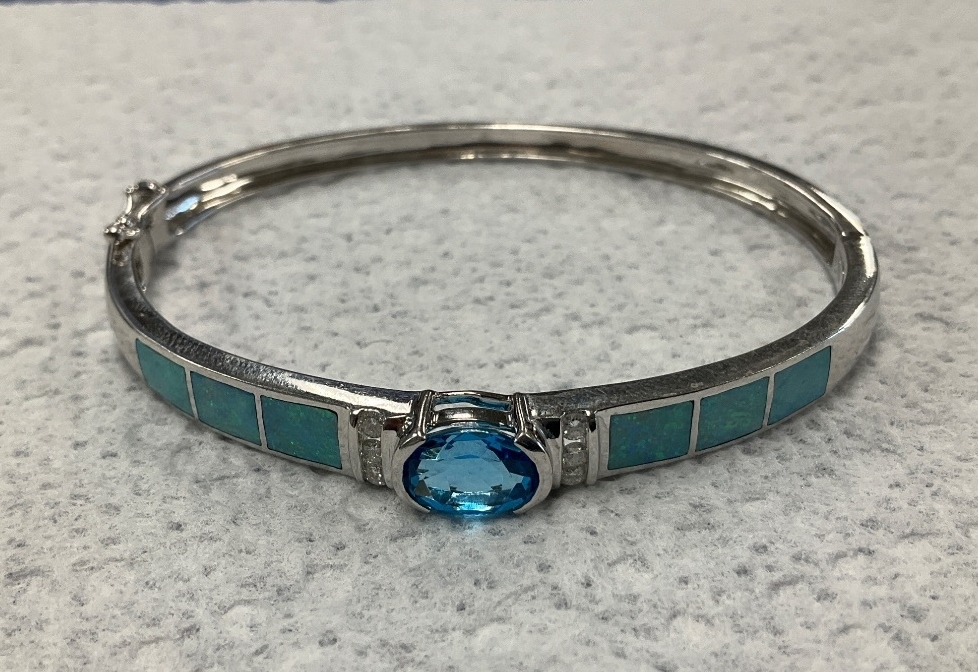 14K White Gold Fire Opal & Blue Stone Bangle Bracelet 15.4gr