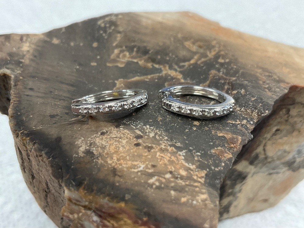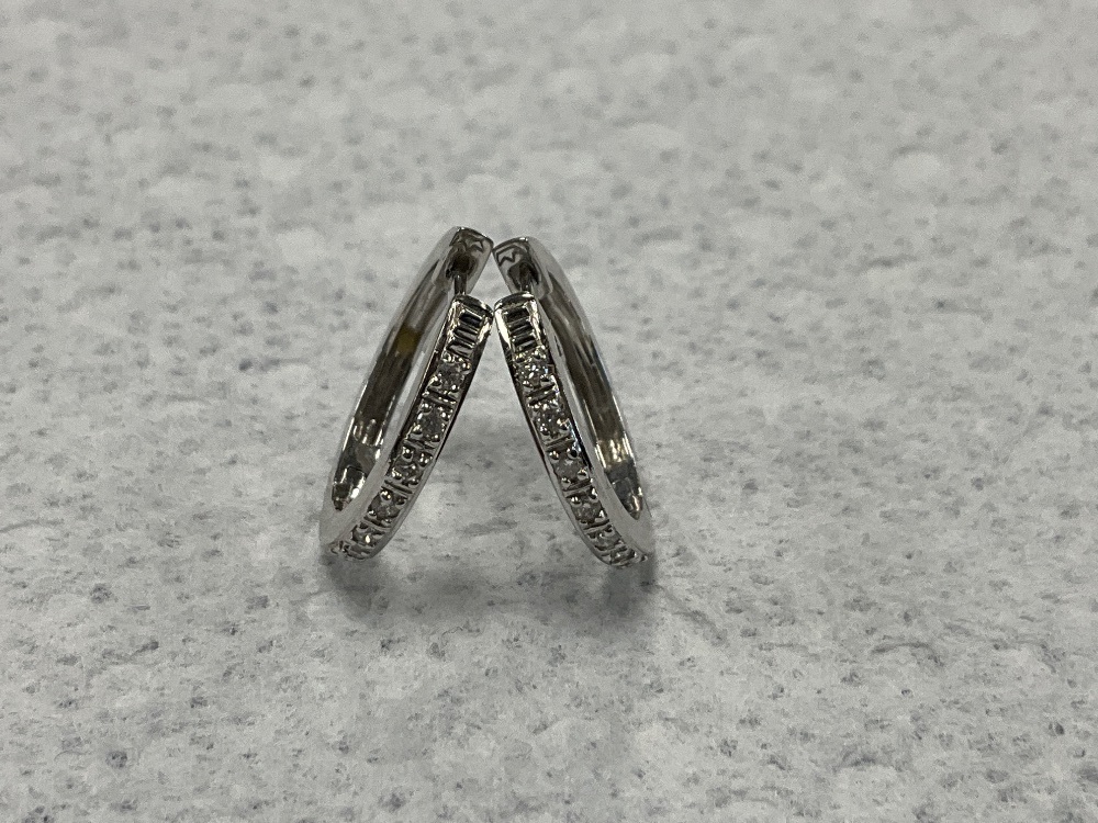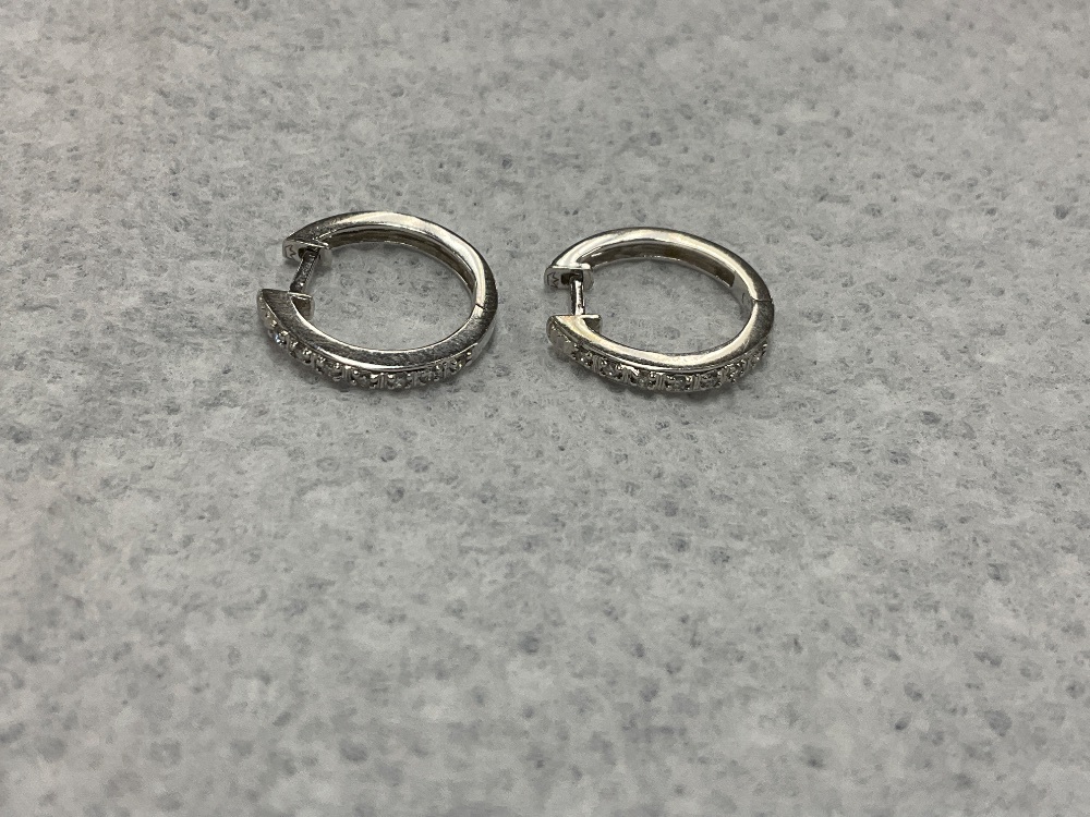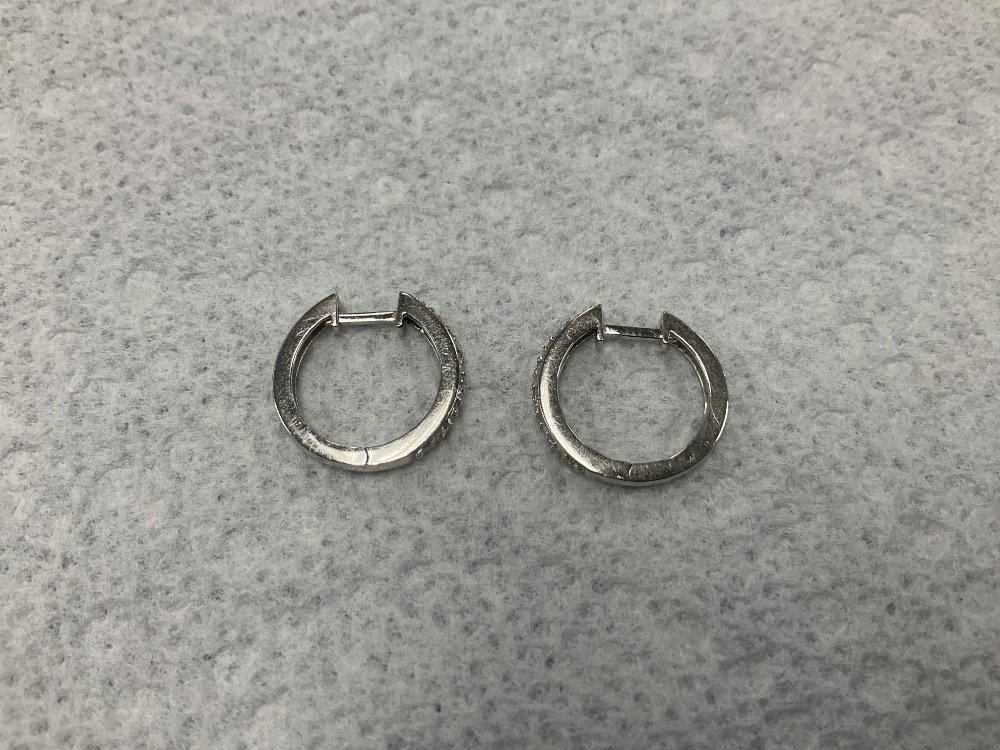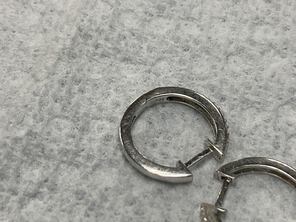 14K White Gold Mini Diamond Hoop Earrings 2.2gr