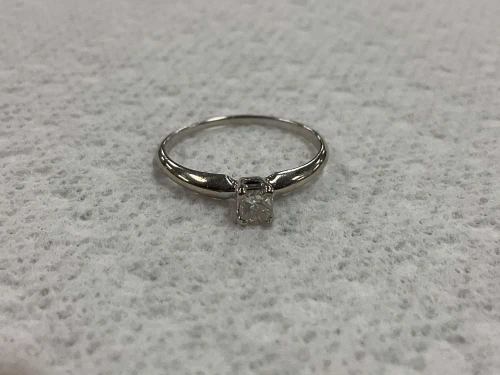 14K White Gold Solitaire Princess Diamond Ring 1.3gr Size 6.25