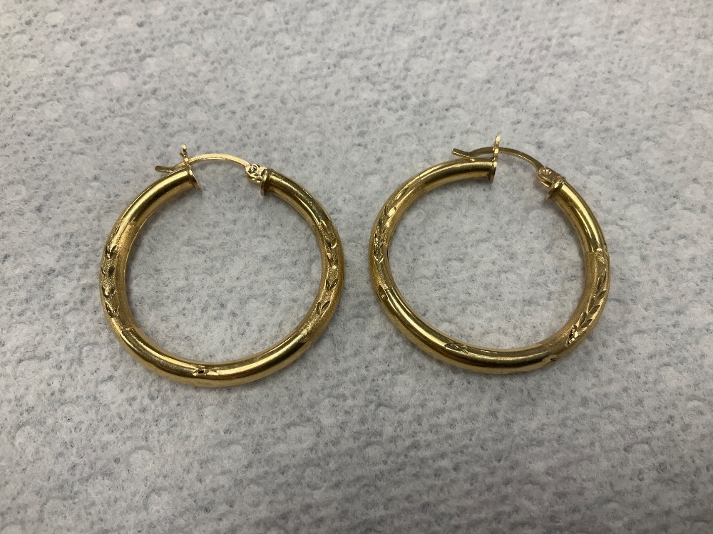 14K Yellow Gold Brushed Hoop Earrings 3.5g