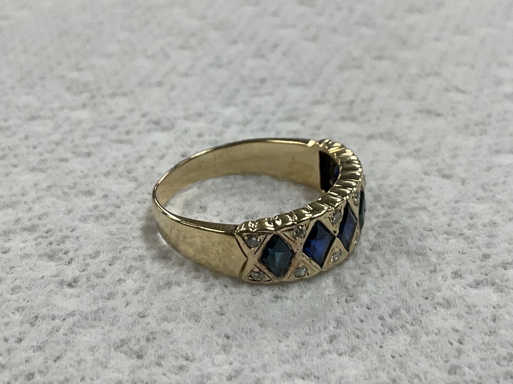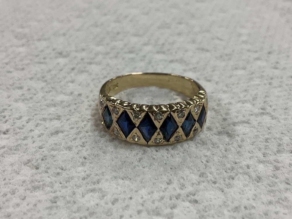 14K Yellow Gold Diamond & Blue Stone Ring 4.3gr Size 6.75