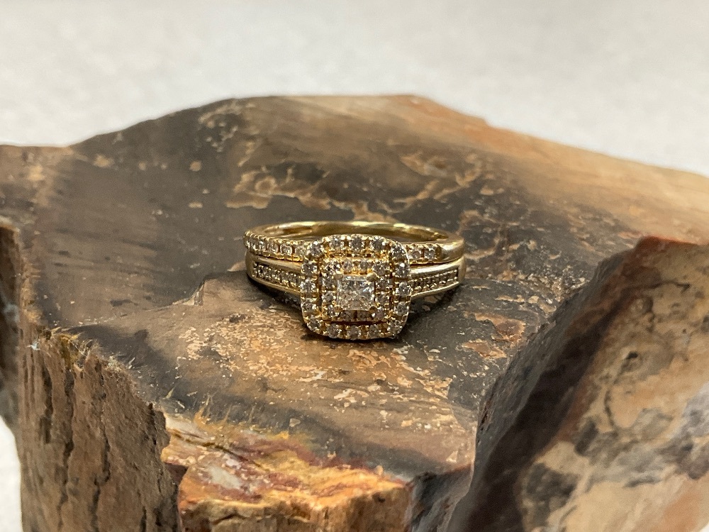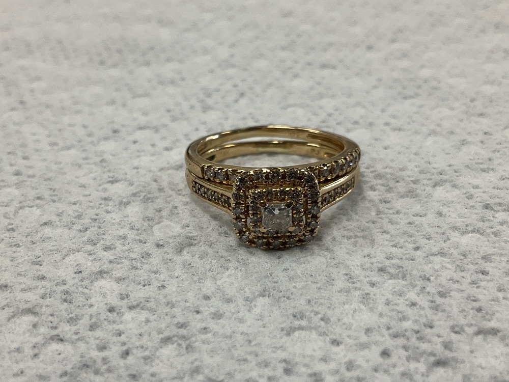 14K Yellow Gold Diamond Halo Wedding Set 4.0gr Size 5.75