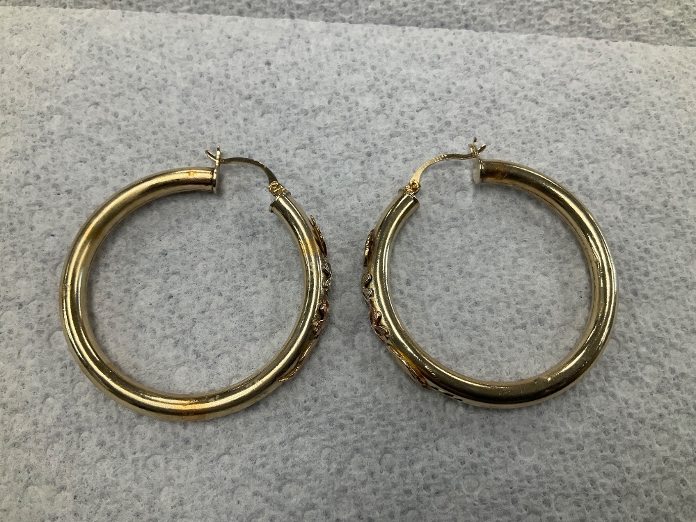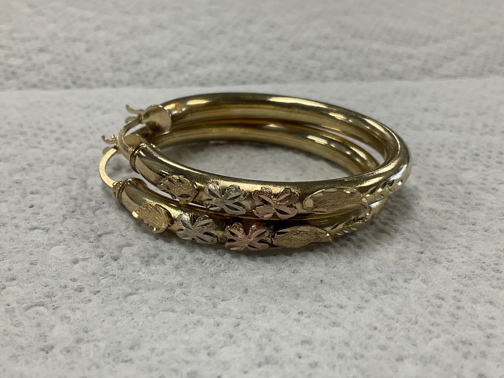 14K Yellow Gold Hoops with Rose & White Gold Accents 9.1gr