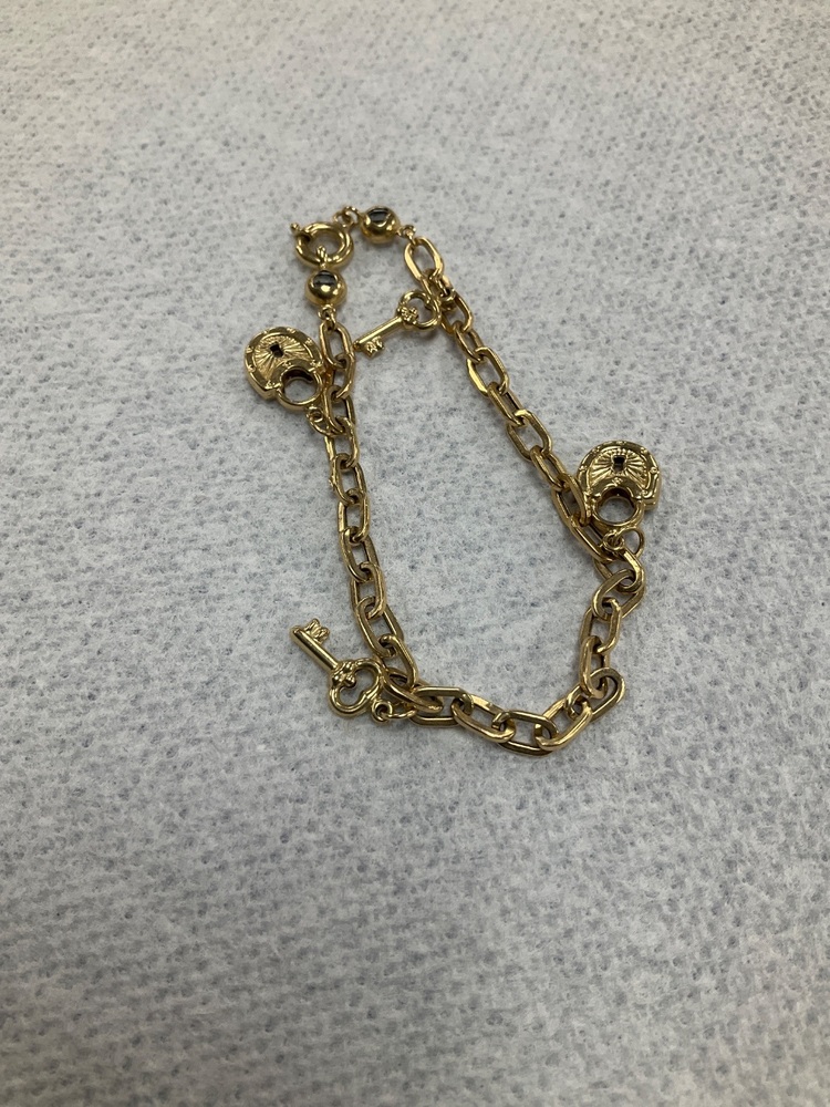 14K Yellow Gold Lock & Key Charm 7.5" Bracelet 5.6gr