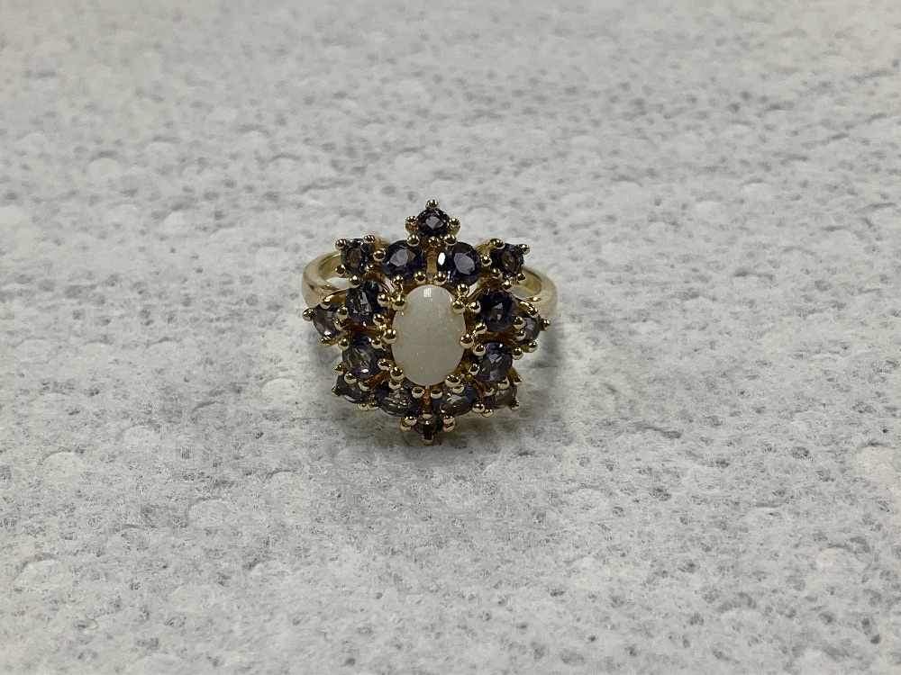 14K Yellow Gold Opal & Tanzanite Ring 4.2gr Size 6