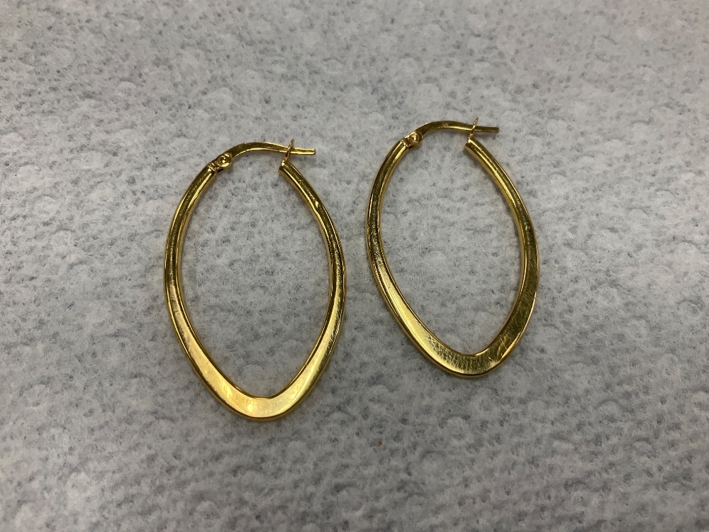 14K Yellow Gold Oval Hoop Earrings 1.6gr