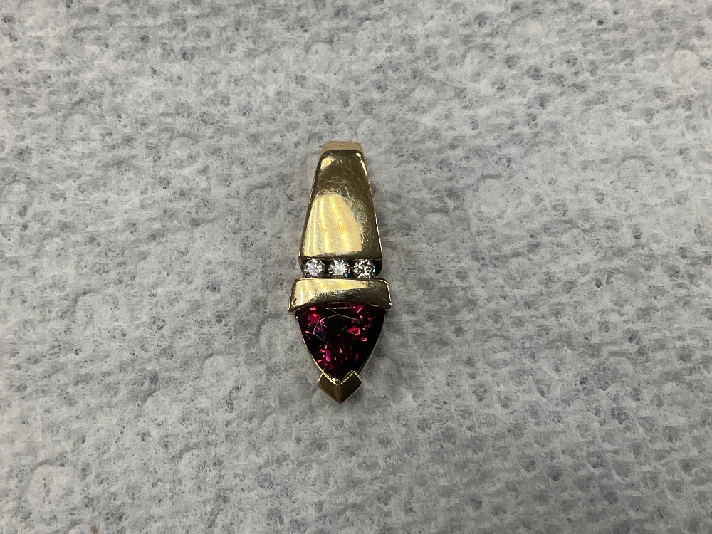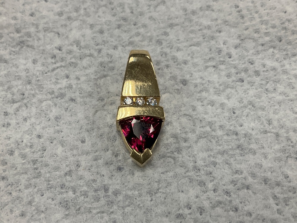 14K Yellow Gold Red Stone & Diamond Pendant 3.5gr