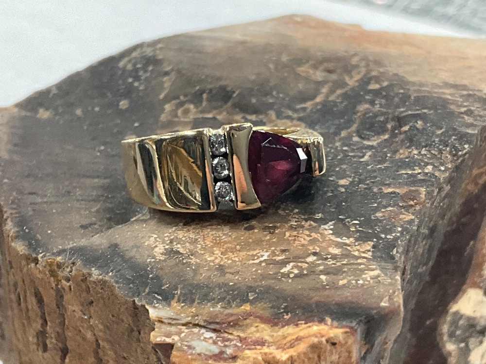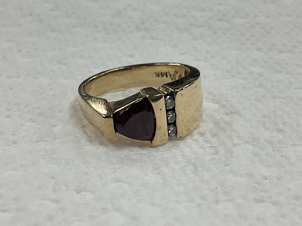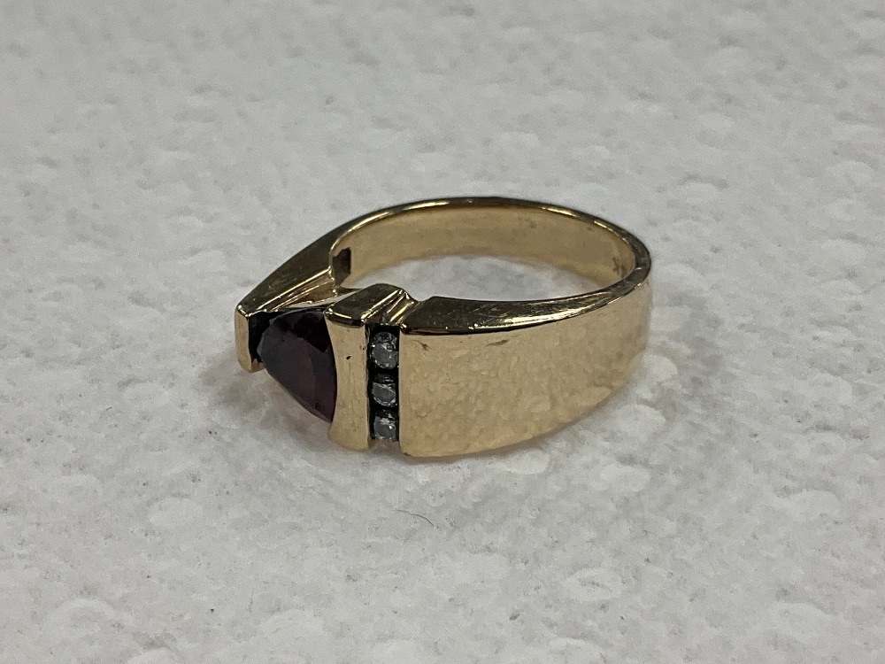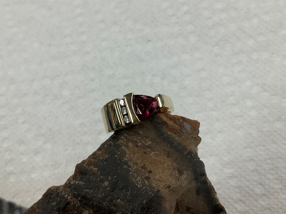 14K Yellow Gold Red Stone & Diamond Ring 7.6Gr Size 6.75