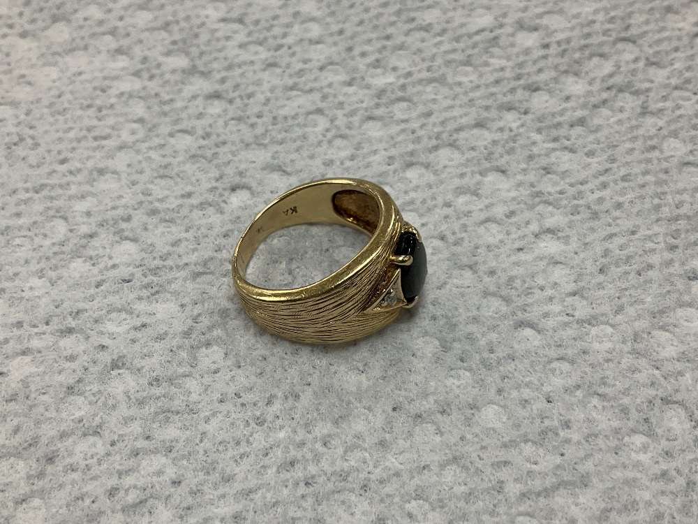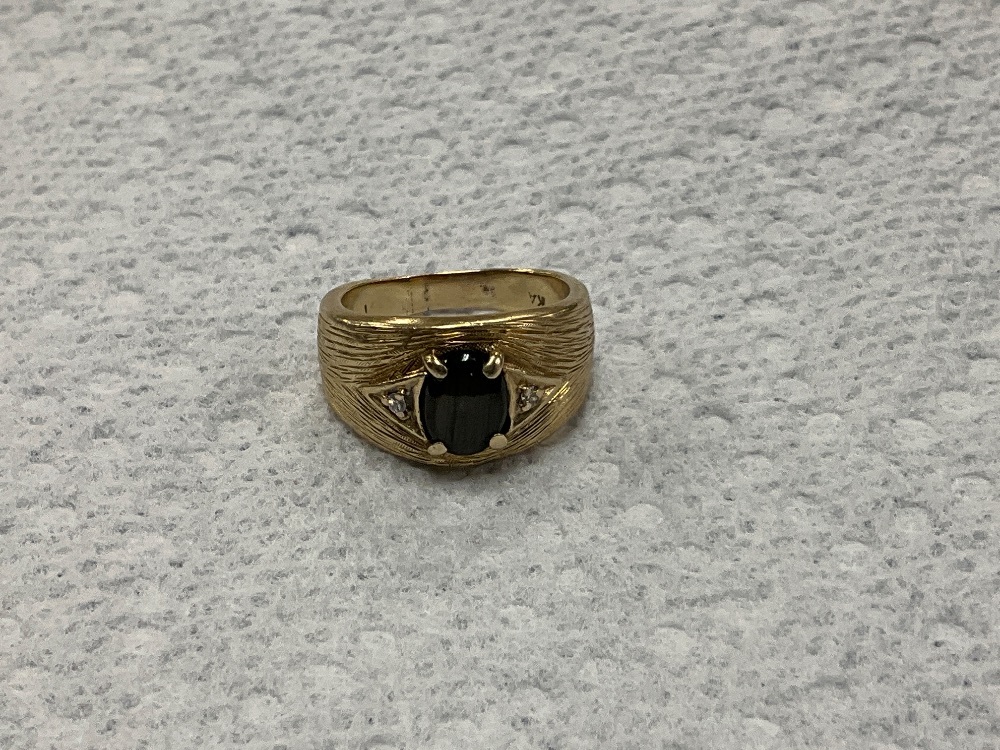 14K Yellow Gold Solitaire Oval Brown stone Diamond Ring 6.8Gr Size 6.5- 2 Round Faint Color SI1 Diamond 0.01pts. 1 Brown Oval Unknown