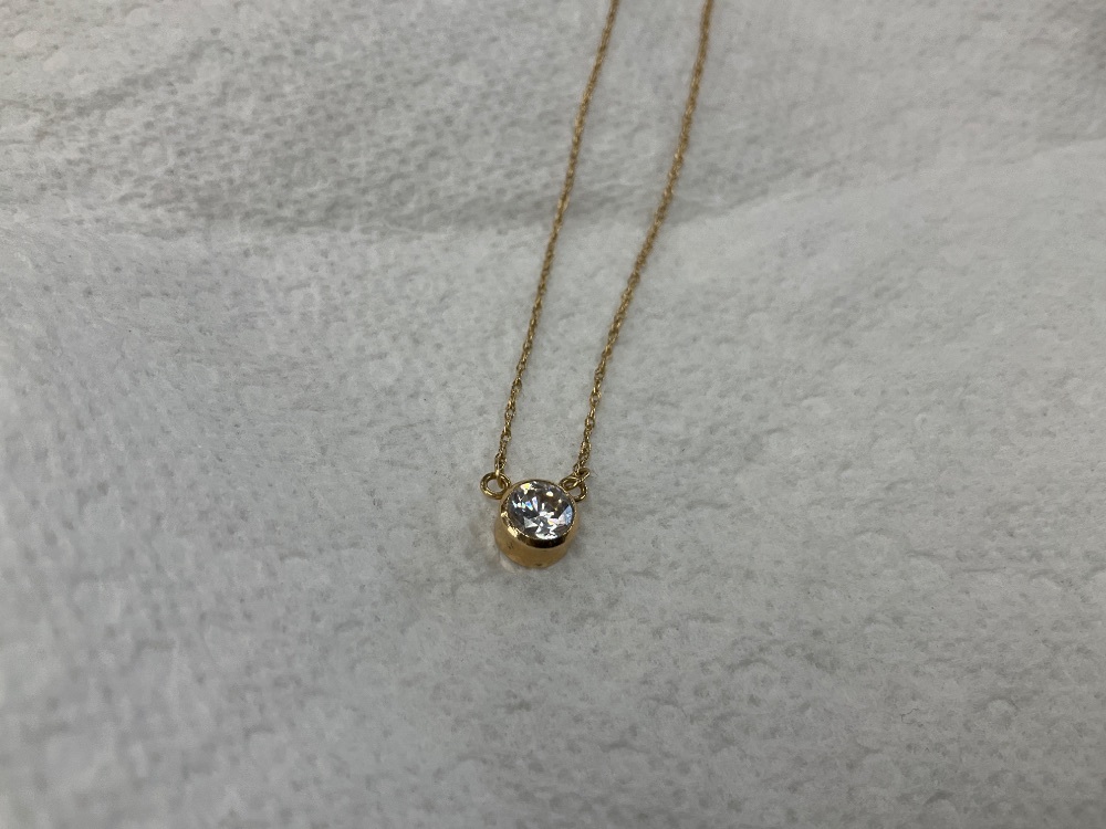 14K Yellow Gold Solitaire Stone Pendant 17.5" Necklace 1.7Gr