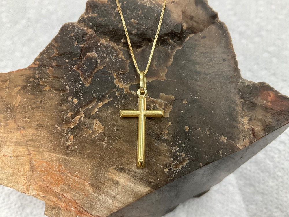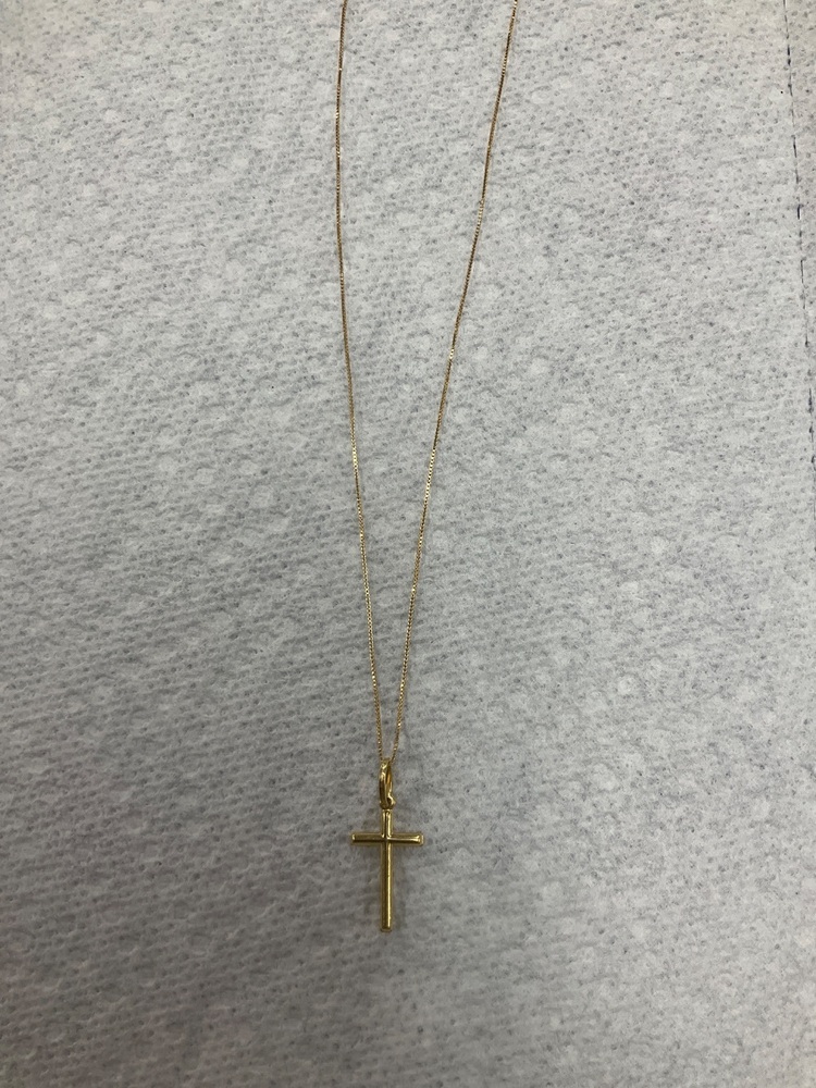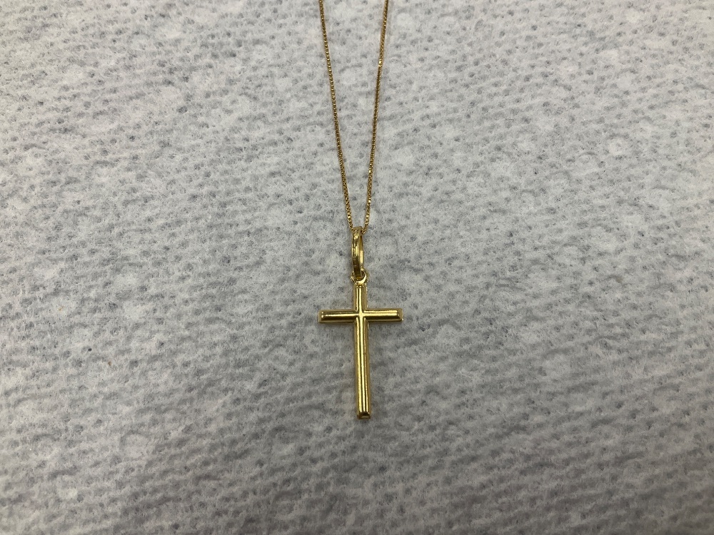 18K Yellow Gold 16" Box Chain w/ Cross Pendant 2.0gr