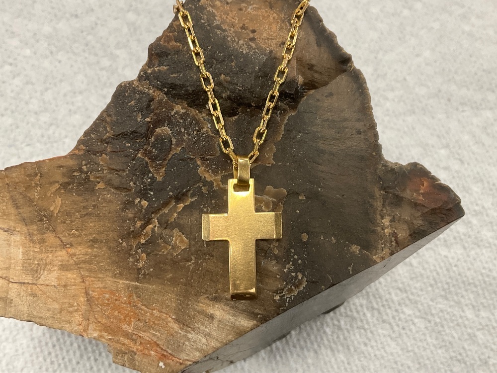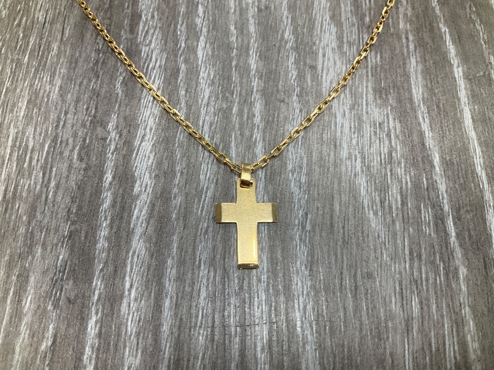18K Yellow Gold 24" Chain Necklace with Cross Pendant 10gr