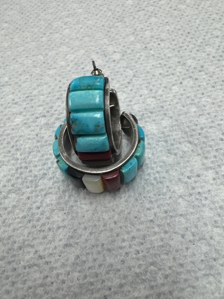 925 Sterling Silver Turquoise Hoops 12.5Gr