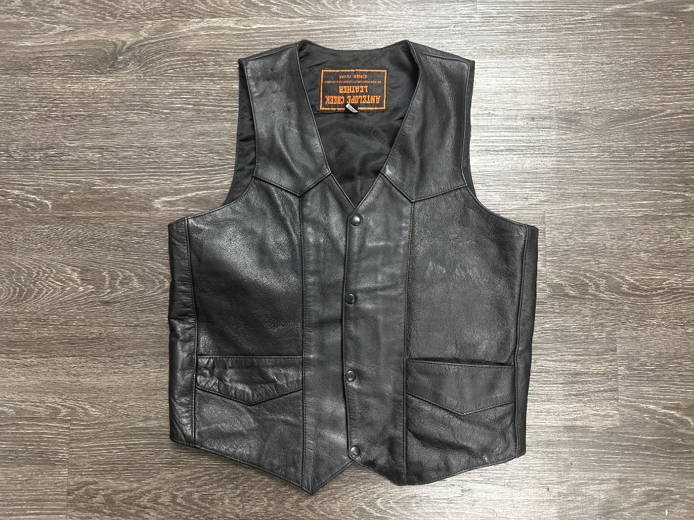 ANTELOPE CREEK LEATHER VEST W/ HARLEY DAVIDSON PATCH SIZE 44/ XL