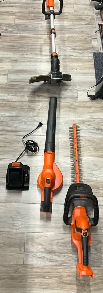 COMES WITH BLOWER, HEDGE TRIMMER, STRING TRIMMER, ONE BATTERY AND CHARGER