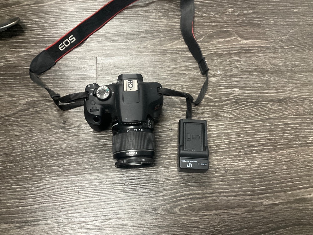 CANON EOS REBEL T7 CAMERA WITH BATTERY AND CHARGER HAS SMALL SCRATCH ON LENS
