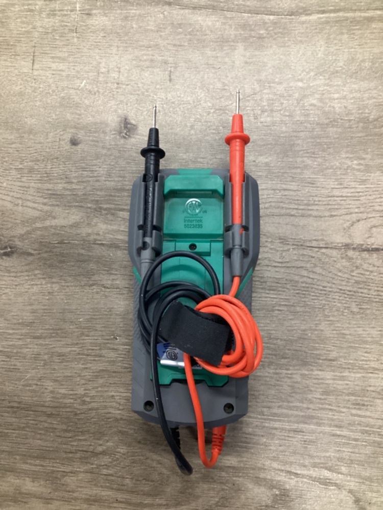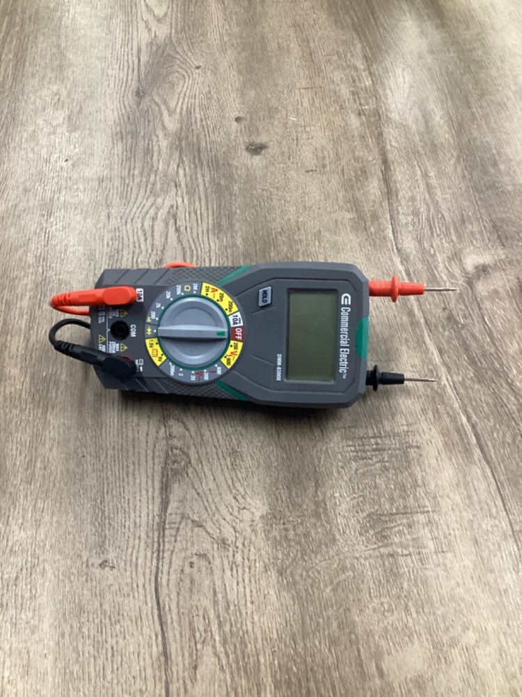 Manual Ranging Digital Multi-Meter by Commercial Electric with leads; accurately measures voltage, resistance, and current for electrical testing.