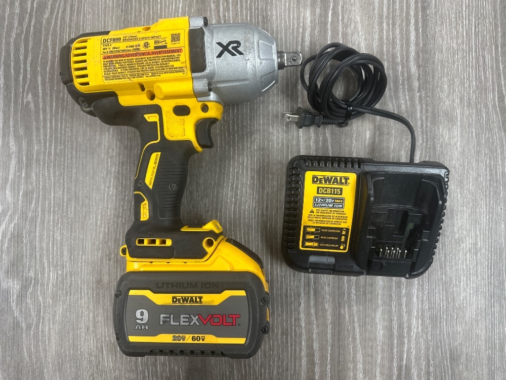 DEWALT 20V CORDLESS IMPACT WRENCH WITH 9AH FLEXVOLT BATTERY AND CHARGER