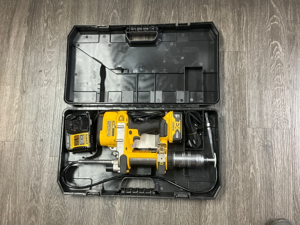 DEWALT 20V MAX POWERED GREASE GUN W/ CHARGER, BATTERY, AND CASE
