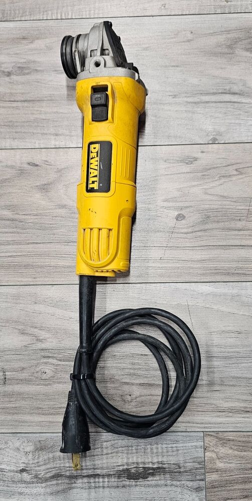 DeWalt 4-1/2 corded angle grinder Priced As-Is. Missing safety guard and handle; functional but requires parts for safe operation.
