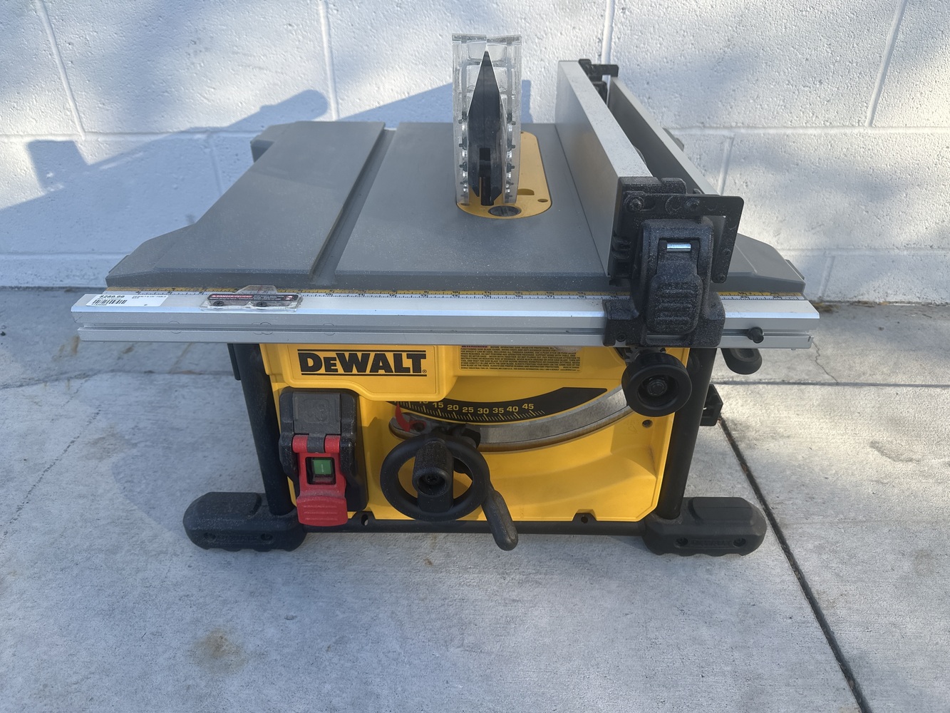 Maximized for accuracy and capacity, the DEWALT DWE7485 8-1/4 in. Jobsite Table Saw includes on-board storage for blade guard assembly, non-through cut riving knife, anti-kickback pawls, blade change wrenches, miter gauge, and push stick. The powerful DEWALT 15 Amp, 5800 RPM motor allows users to complete a majority of applications. The rack and pinion fence allow for fast, easy adjustments and provides the capacity to rip 4x8 sheet goods.