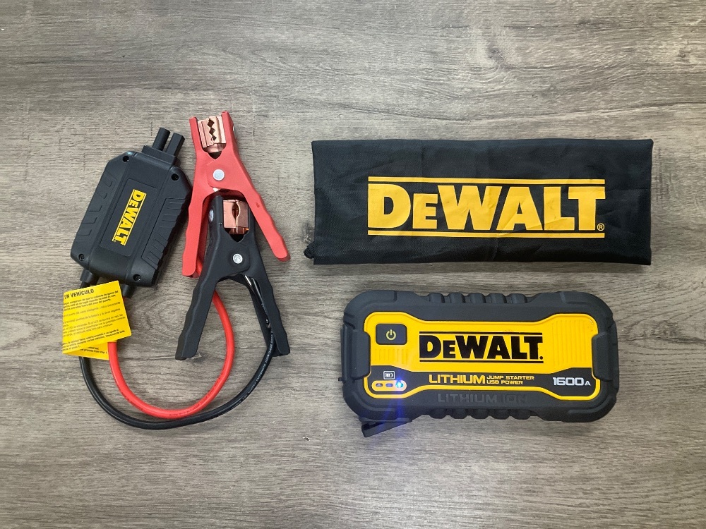 Get your vehicle started effortlessly using the powerful DEWALT Jump Starter. With a robust 1600AMP output, it ensures quick ignition. This mobile powerhouse comes packaged in a carry bag along with necessary leads, enabling portability and optimal functionality. An essential tool for every car owner.