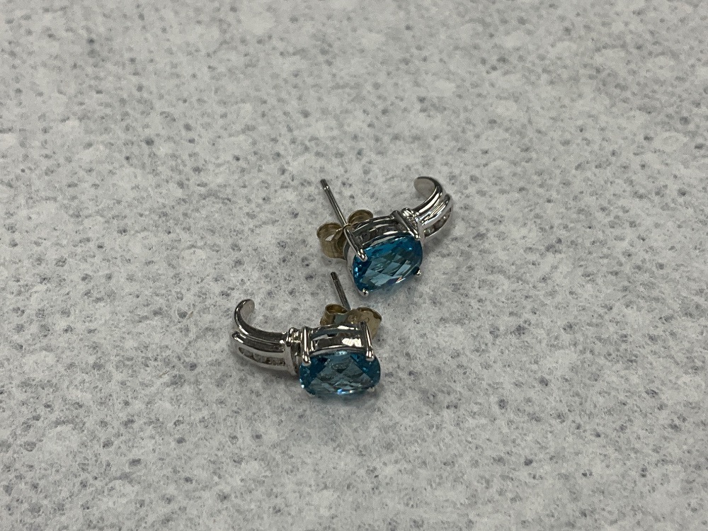 Female White Gold Studs Earrings 2.6g/14kt - 2 Unknown Blue Oval Unknowns 7x5.5mm/0.000ct/0.00g