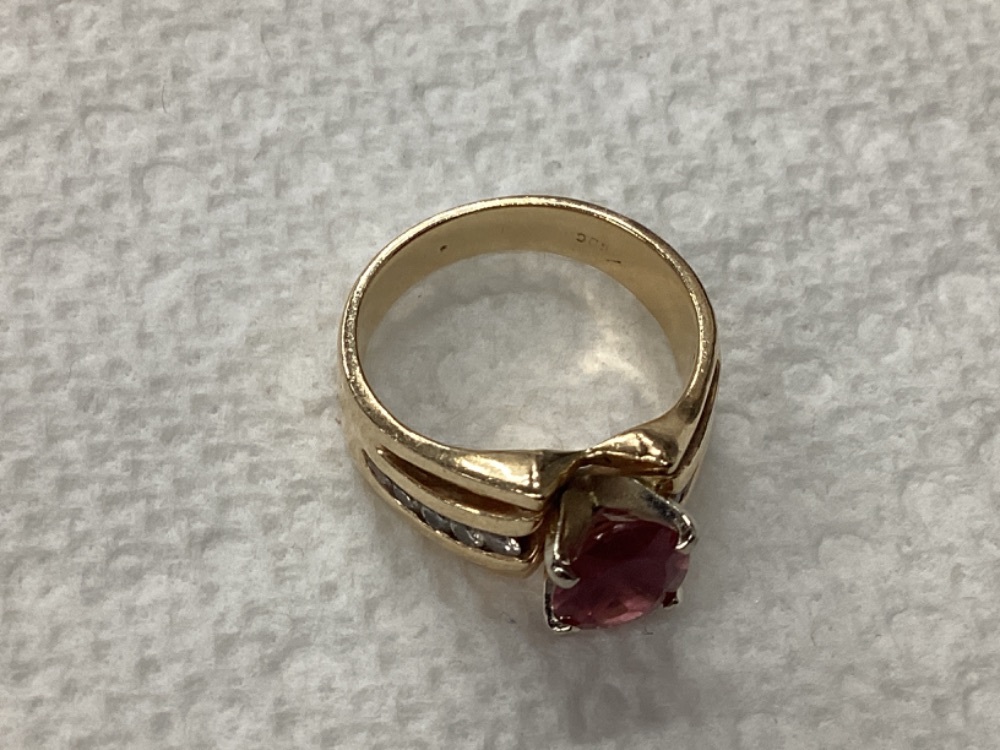 Yellow Gold 14kt 4.82dwt Ring Sz:7.25 WIDER WOMENS BAND W/ BIG PINK STONE IN THE CENTER
