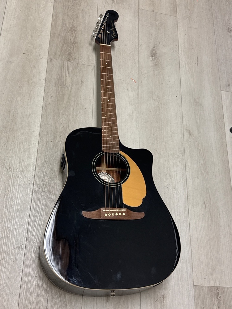 The Fender Redondo A/E Guitar delivers clear sound with rich, resonant tone. It features a spruce top, mahogany back, sides and neck, and arched-back design. With its vintage-style appointments, this versatile acoustic-electric guitar provides excellent playability for performers and music enthusiasts alike.