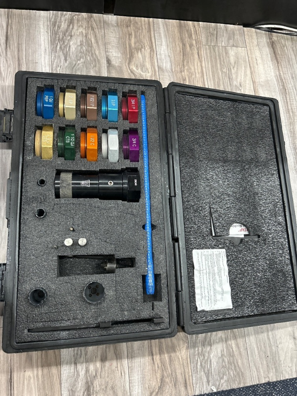 The Ford SIMTAP™ is an excellent option for the contractor or utility wanting the flexibility to make a fast and easy tap without pulling out the big machines. The SIMTAP™ drilling machine assembles in seconds and works with most corporation stops. SIMTAP™ is powered by a high quality battery powered (20V or higher) drill, or a 1/2" pneumatic drill, operating at low rpms, which virtually eliminates the risk of melting PVC and resists overheating during multiple taps.