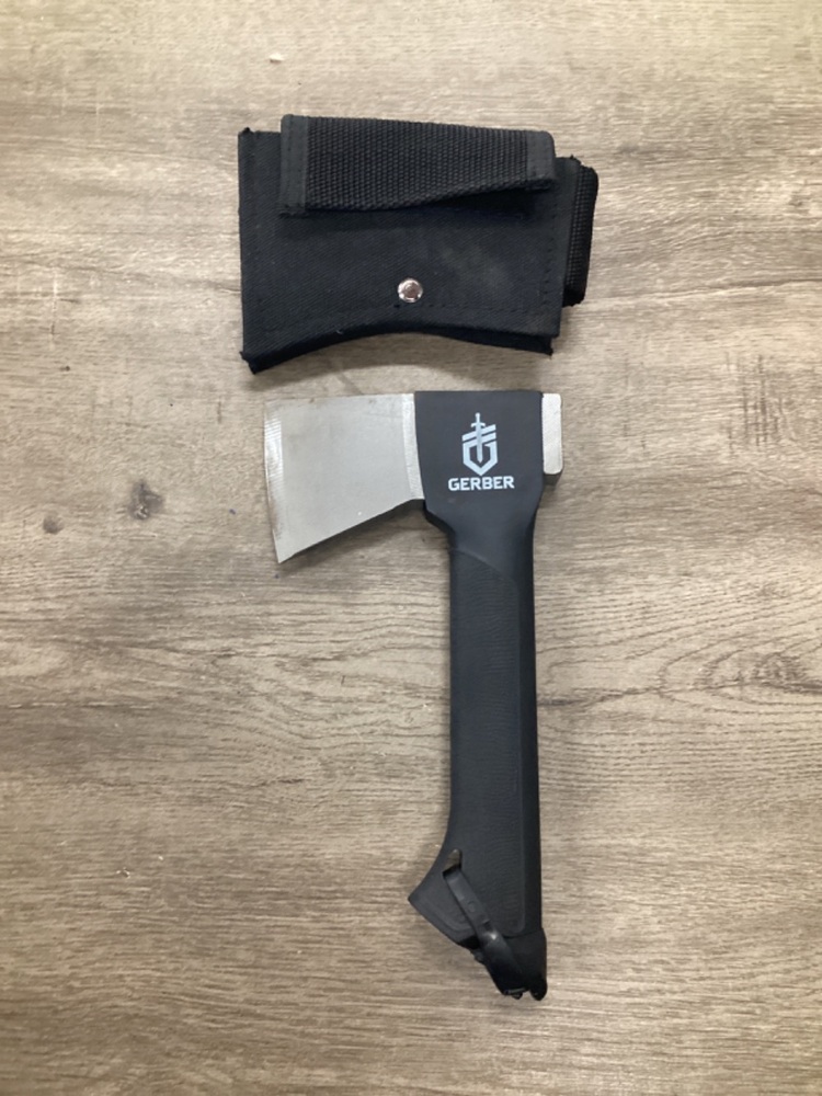 High-durability, compact Gerber Gear Hatchet features protective sheath, ergonomic handle, superior edge retention for precise chopping.