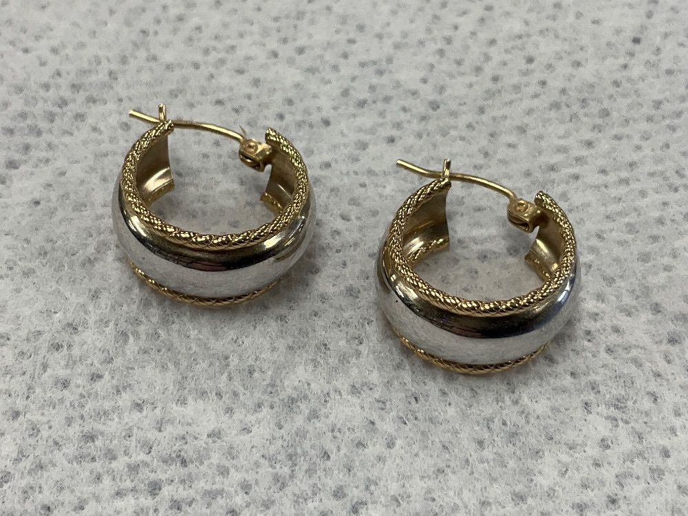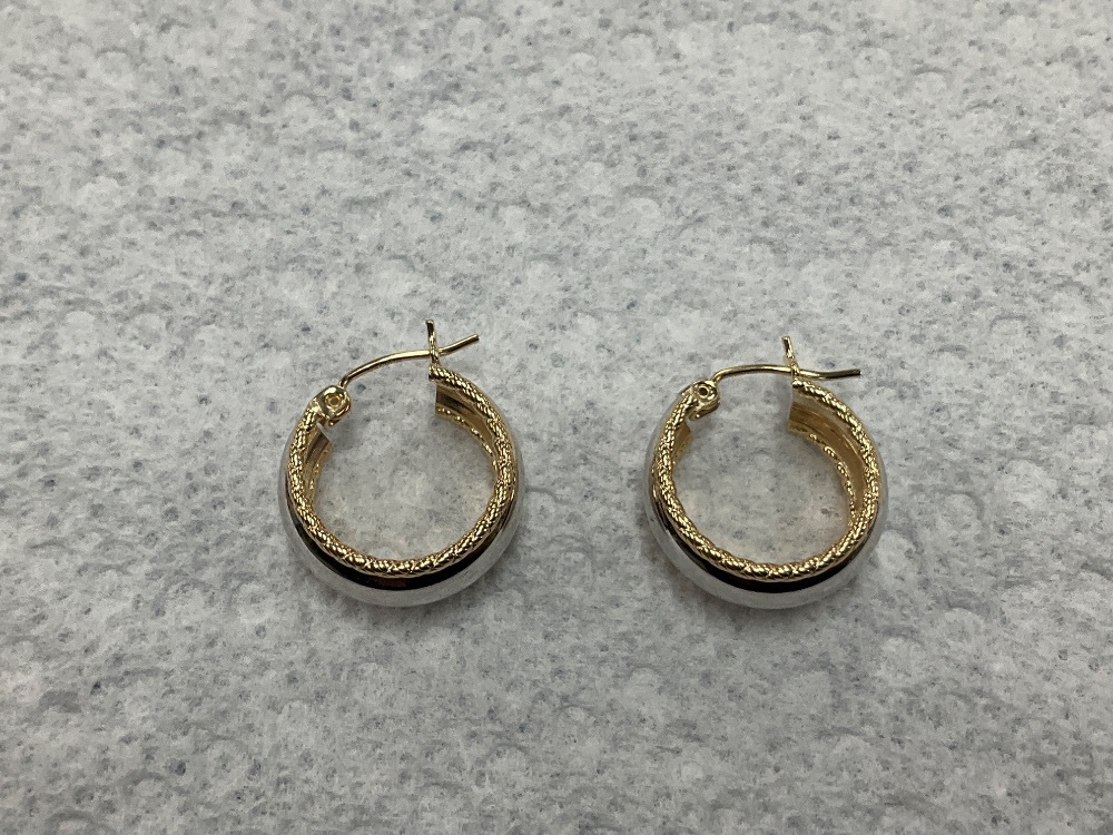 Two tone Gold Hoops Earrings 2.7g/14kt