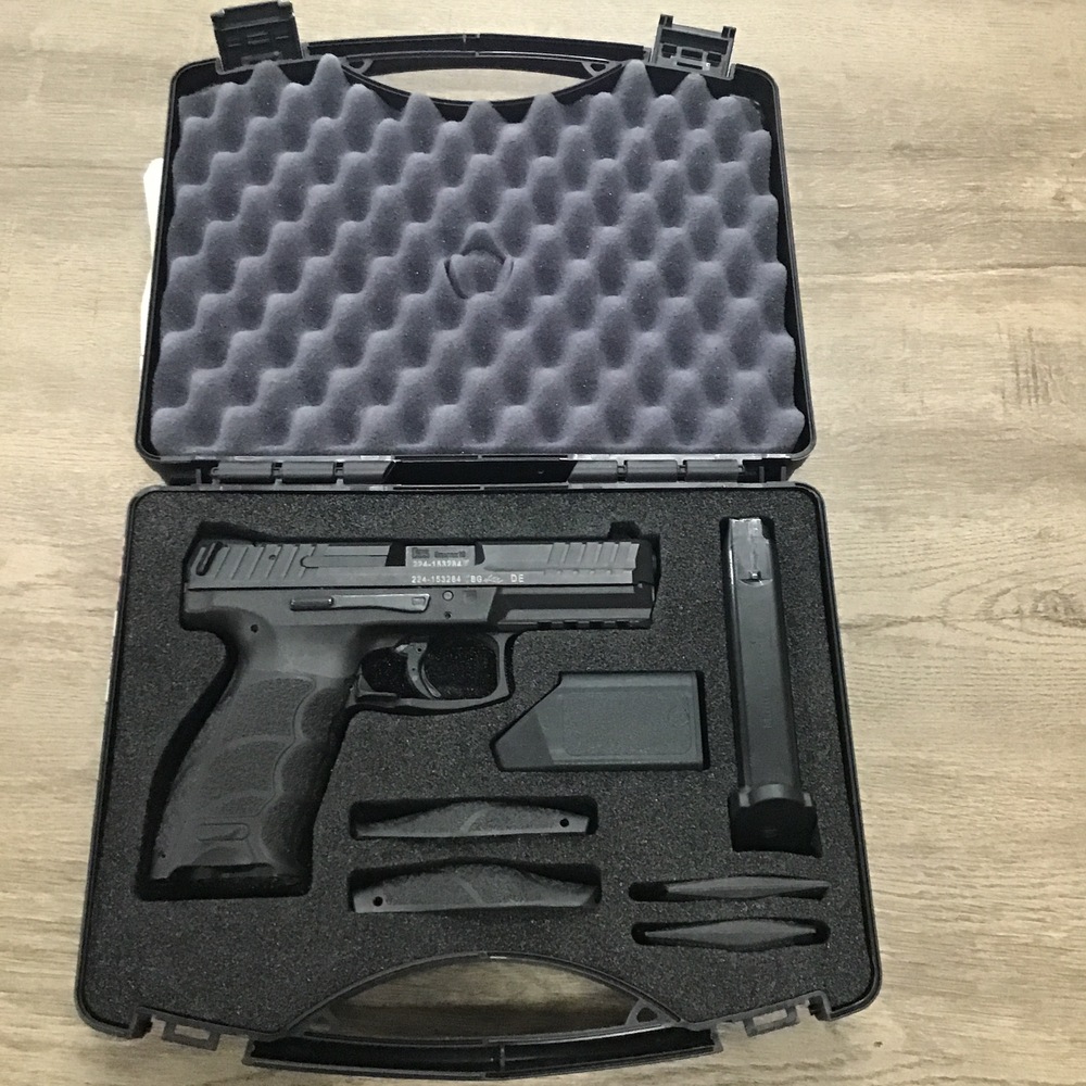 The H&K VP9 9mm, a high-performance, reliable handgun, comes with one magazine and a protective case. Known for precision, durability, and ergonomic design, this pistol offers superior trigger control and is suitable for various shooting applications. Ideal for self-defense and sport shooting.