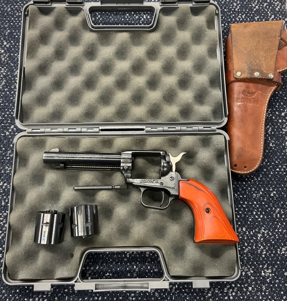 The Heritage Rough Rider combines both .22LR and .22MAG in one versatile firearm. Equipped with a case, it's durable and easy to transport. Perfect for hunting, target shooting, or plinking, it's a reliable choice for any gun enthusiast.