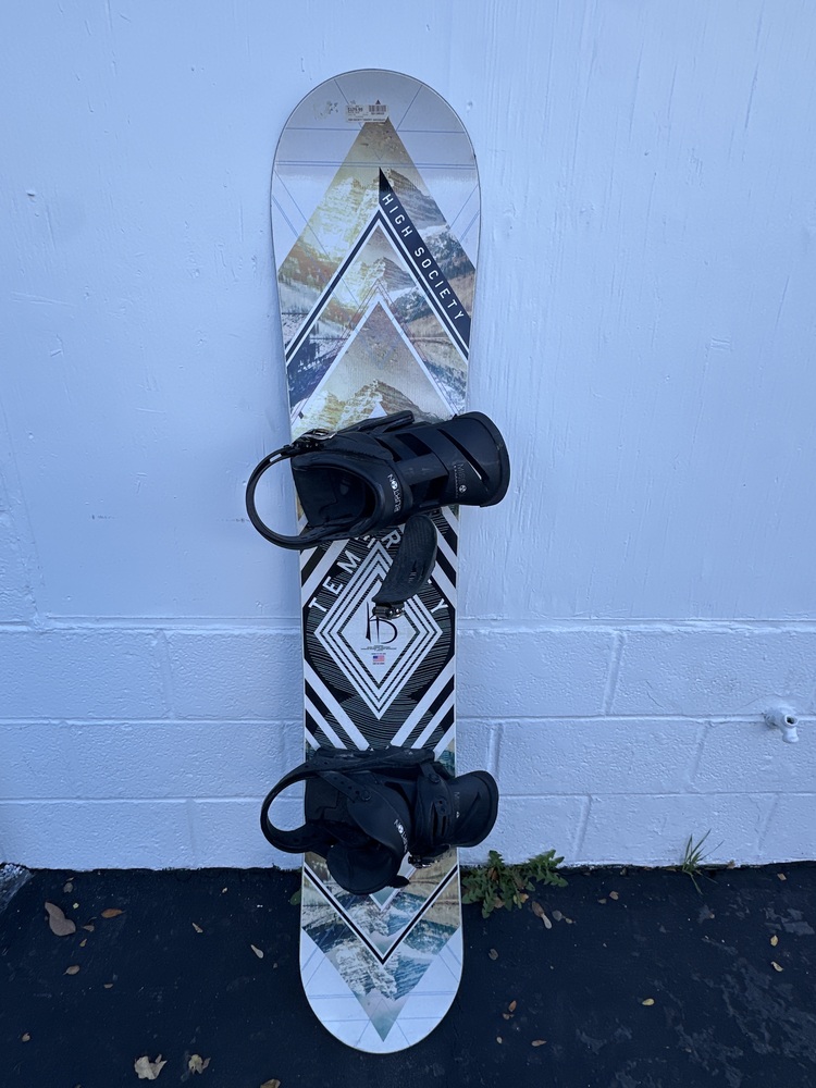 The High Society Temerity Snowboard 155CM offers exceptional versatility, ideal for all-mountain and backcountry snowboarding adventures.